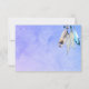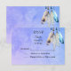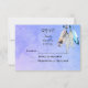 A watercolor wedding rsvp. A watercolor design with four soft delicate looking feathers beaded together hanging down from the top border. The background is a soft purple blue watercolor texture. A bobo hippy tribal motif with a native american feel.