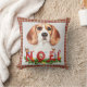 Watercolor beagle portrait with added Noel text and Christmas bouquet with wintery plaid border