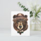 This design features a bear painted in watercolors wearing a hat and bow tie.