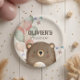 Cute watercolor teddy bear with balloons paper plate with personalized name and age will make your child birthday special! This party theme is perfect for girls and boys at any age... Other party supplies from this line are also available...