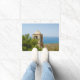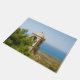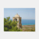 Detail of bell tower with pine tree and sea view in a Mediterranean island