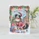 A heartwarming Bernese Mountain Dog Christmas card featuring an adorable Bernese Mountain Dog wearing a Santa hat surrounded by Christmas decor. Personalise with your greeting text.