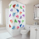 A group of watercolor painted, colourful male Betta fish decorate this unique shower curtain.