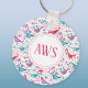 Watercolor painting of birds in a garden of bright orange, pink and teal wild flowers.