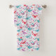 Watercolor Birds in a Garden Floral Teal Pink Bath Towel Set
