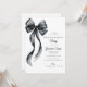 A modern graduation ceremony invitation card with a watercolor black bow. The text details and image can be personalized.