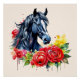 Watercolor Black Horse Red Roses Poster