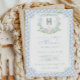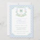 Watercolor Blue 1st Birthday Monogram Crest Party Invitation
