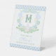 Watercolor Blue 1st Birthday Monogram Crest Party Pedestal Sign