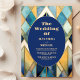 Watercolor Blue and Gold Art Deco Wedding Invitation