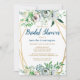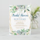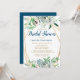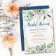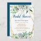Soft blue, pink, and white boho watercolor flowers within a gold double geometric frame feature botanical and berry flourishes and the back of the card has a beautiful and rich dark blue colour. Customise this bridal shower invitation with your own colours and fonts or keep this popular typography as it is for your convenience.