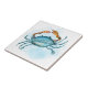 Add a fun coastal accent to your kitchen with this ceramic tile featuring a blue watercolor crab on a splash of ocean wave.