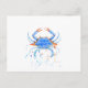 Watercolor blue crab paint splatter postcard