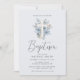 watercolor blue floral cross baptism invitation