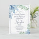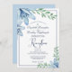 Light, airy watercolor Wedding Reception invitation featuring dusty blue and navy blue blooms and greenery on the front and a solid dusty blue colour on the back.ASSISTANCE: For help with design modification/personalisation, colour change, transferring the design to another product or if you would like coordinating items, contact the designer BEFORE ORDERING via the Zazzle Chat MESSAGE tab or email at makeitaboutyoustore@gmail.com.