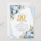 Watercolor Blue Flowers 90th Birthday Elegant Invitation