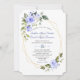 Watercolor Blue Flowers Gold Frame Wedding Invitation