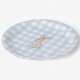 Watercolor Blue Gingham Bunny Paper Plate