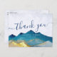Watercolor Blue & Gold Mountains Wedding Thank You Postcard