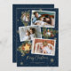 Watercolor Blue Gold Photo Merry Christmas Cards