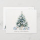 Watercolor Blue Green Christmas Tree Holiday Postcard