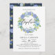 Watercolor Blue Hydrangea Flowers Wreath Baptism Invitation