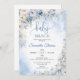 Watercolor blue hydrangea white roses baby brunch invitation