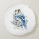 Watercolor Blue Jay Bird Blueberries Country Art Round Cushion