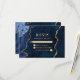 Modern Elegant Watercolor Blue and Gold Marble Agate Geode Wedding RSVP Card