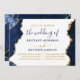 Modern Elegant Watercolor Blue and Gold Marble Agate Geode Wedding Invitation. Trendy Calligraphy Script. Gold Text.