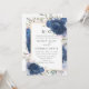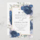 Watercolor Blue & Navy Floral Monogram Wedding Invitation