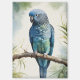 This delicate watercolor painting features a charming blue parakeet perched on a eucalyptus tree branch, surrounded by soft green leaves. The gentle brushstrokes and soothing colour palette create a peaceful and nature-inspired scene, perfect for bird and botanical art lovers.
