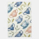 watercolor blue pink tea cups pattern tea towel