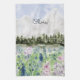 Watercolor Blue Purple Flower Meadow Mountain Tea Towel
