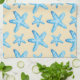 Watercolor Blue Starfish Pattern Tea Towel
