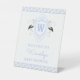 Watercolor Blue Stork Gingham Monogram Crest Pedestal Sign