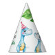 Watercolor Blue Trex Greenery Kids 3rd Birthday Party Hat