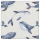 Navy blue whales in watercolor dive and swim underwater with white background ideal for home decor. All fabrics can be resized and the background colour can be changed by contacting artist.