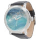Watercolor Blue White Ocean Wave Custom Photo Name Watch