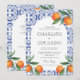 Watercolor Bluetile Mediterranean Wedding QR Code Invitation