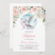 Watercolor blush floral wreath cute dove Baptism Invitation