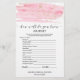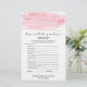 This watercolor blush & gold "what's in your purse" game is perfect for a romantic and sweet modern theme bridal shower. The front of the game card features "how well do you know the bride", and the back of the card features "what's in your purse". The luxurious feminine design features a light pink watercolor texture with a splash of faux gold glitter dust and an elegant calligraphy script font.