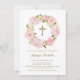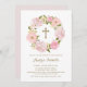 Invite guests to your event with this customisable baptism invitation. It features a blush pink peony wreath. Personalise this botanical invitation by adding your details. This floral wreath baptism invitation is perfect for spring and garden events.