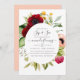 Boho floral sip and see invitation featuring peony and anemone flowers, greenery and feathers in accents of burgundy plum and blush pink customisable to your specifics.