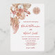 This elegant Chinese American wedding invitation in modern colours features dusty rose and blue flowers on a tropical leaves and real rose gold foil double happiness symbol on a white background. Bride and groom names in an elegant calligraphic handwritten script.