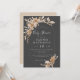 Rustic boho Baby shower invitation featuring a bouquet of peach/ beige watercolor floral on grey background in a modern oval/ oblong frame.