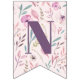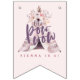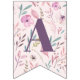 Watercolor boho teepee birthday party bunting in purples and pink. Beautiful watercolor flower illustrations and script text. With space foe name and age. Perfect for the little girl in your life.
