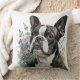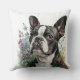 WATERCOLOR BOSTON TERRIER DOG WITH FLOWERS CUSHION