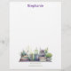 Elevate your correspondence with this Personalized Stationery Letterhead Paper featuring Purple & Green Watercolor Plant and Book Clipart. Each page showcases elegant purple and green watercolor plant illustrations and charming book clipart at the bottom, adding a professional yet artistic touch to your letters, notes, and business communication.