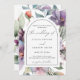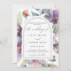 Introducing our minimalist and trendy wedding invitation, featuring a pretty flowers in light purple and green leaves and more, with an elegant background , creating a clean and stylish look for your special day.